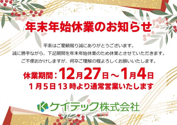 年末年始休業のお知らせ